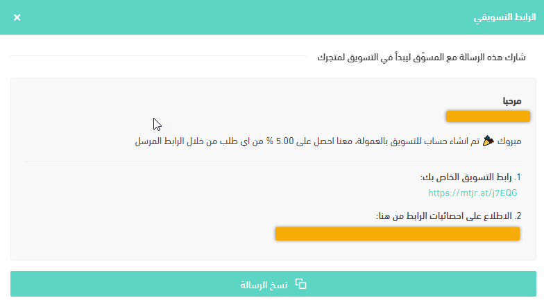مجرد الاشتراك ستحصل على رابط التسويق خاصتك بالإضافة الى رابط صفحة أخرى تعرفك بإحصائيات دخلك اليومي والشهري